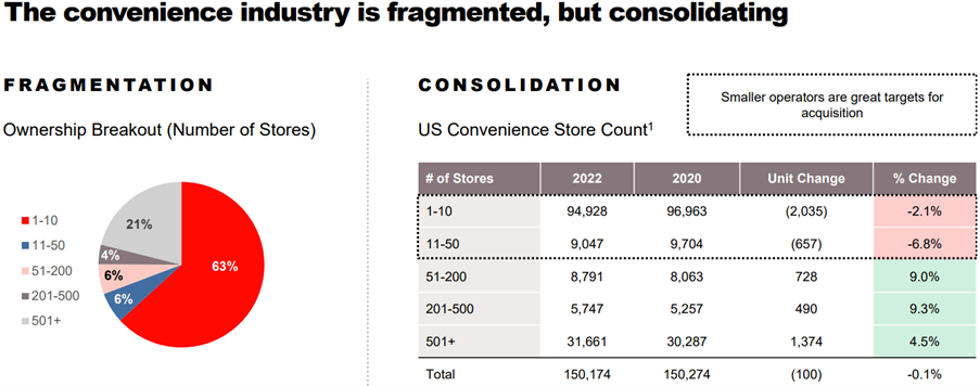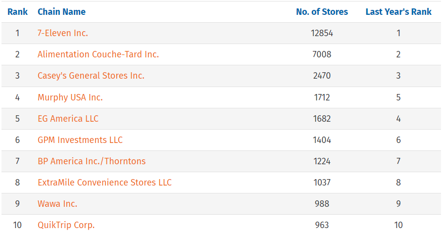 By way of background, Casey’s is ranked #3 by size in the US. (See top ten below at 2022: source.)
