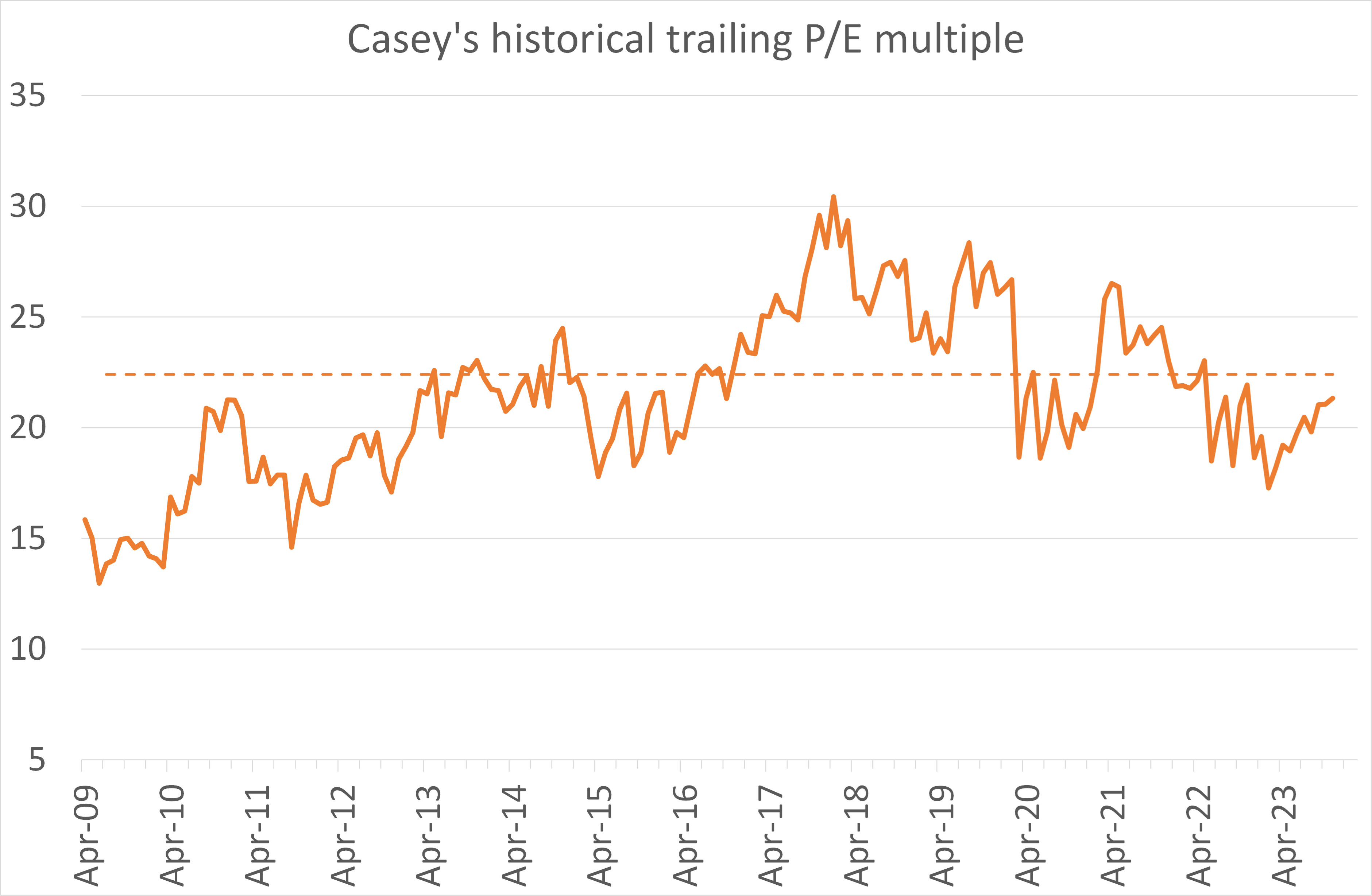 I’d welcome any thoughts from those who know Casey’s or the sector, either on the underlying quality or on how to time the opportunity.