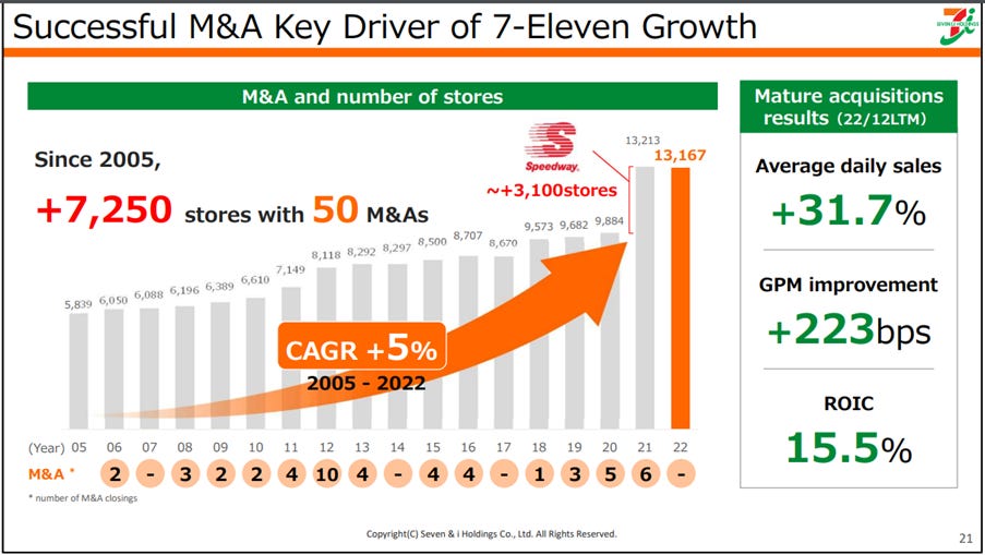 In August 2023 Casey’s agreed to buy 63 stores in Kentucky and Tennessee from EG Group. In November 2023 they completed a 22-store acquisition in Texas. These are typical examples of the small chain acquisitions that Casey’s can make.
